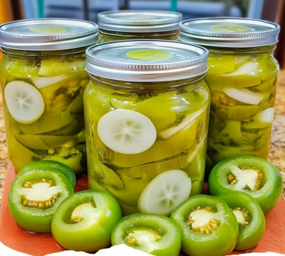Pomodori verdi con cipolle in barattolo